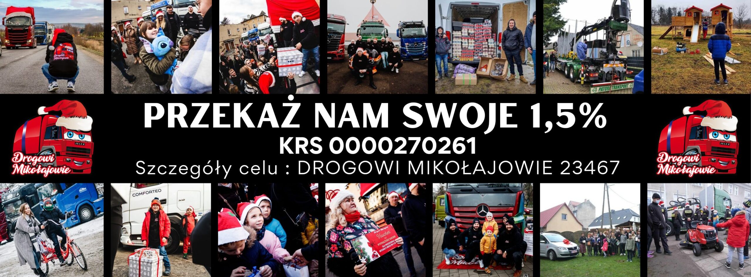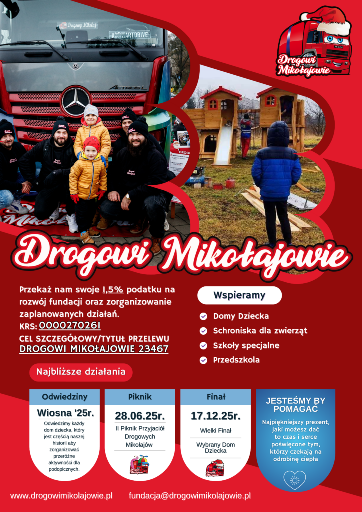 Przy rozliczeniu rocznym wpisz numer KRS: 0000270261, a w szczegółach celu: DROGOWI MIKOŁAJOWIE 23467. Dzięki temu urząd skarbowy przekaże nam 1,5% Twojego podatku.